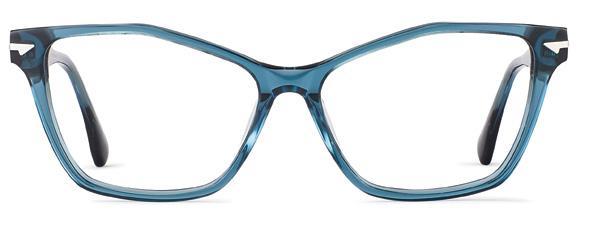 This hand-made acetate frame for women has a cat-eye shape characterised by a touch of geometry at the top, with transparent and luminous colours that enhance the design. Its elegant metallic detail on the end-piece, inspired by the Airport logo, makes it a stylish option perfect for women who want to express their personality through accessories.
