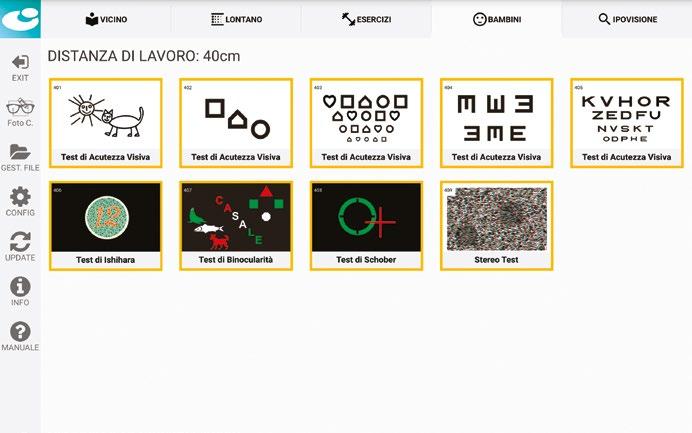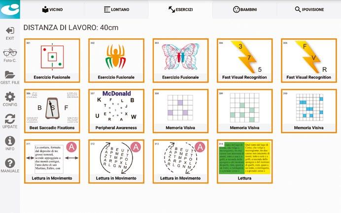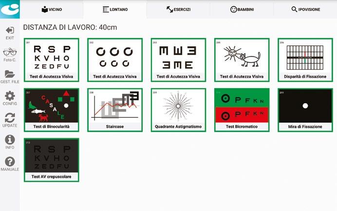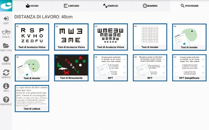 Un sistema digitale che garantisce la gestione dei controlli della visione e del potenziamento visivo. Unico in Italia per numero di test e integrabile ad altre metodologie optometriche con aggiornamenti automatici dei test grazie a due applicazioni certificate e al software certificato come DM classe 1.