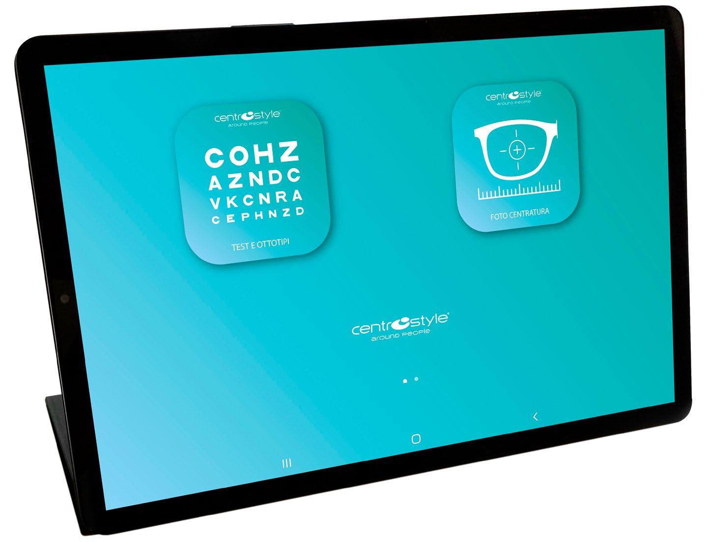 Digital Vision Care Tablet completo di applicazioni e custodia per il supporto.