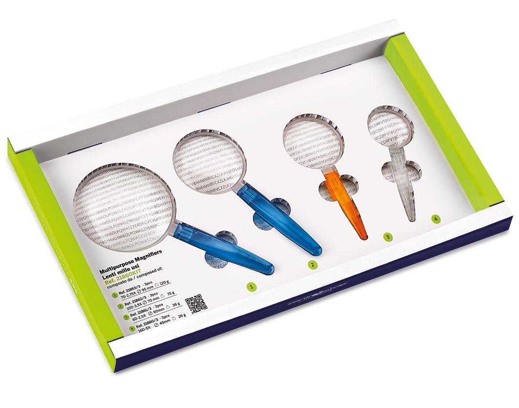 • Lente con impugnatura ergonomica e simmetrica adatta sia per destrimani che per mancini.