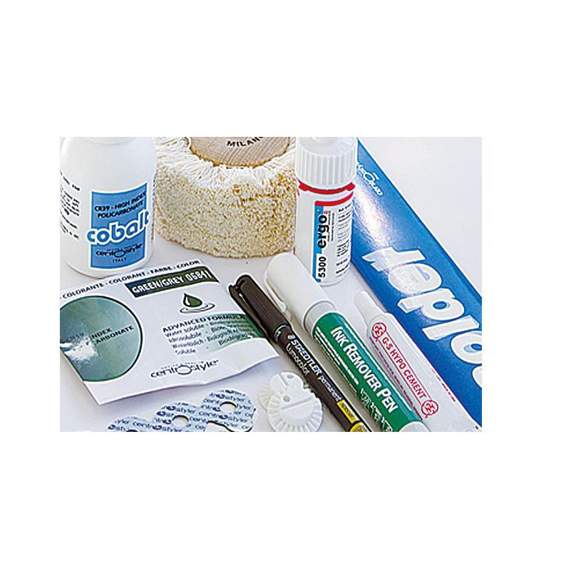 • Dip in acetone to soften and fix into plastic frame groove.