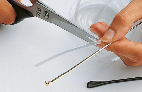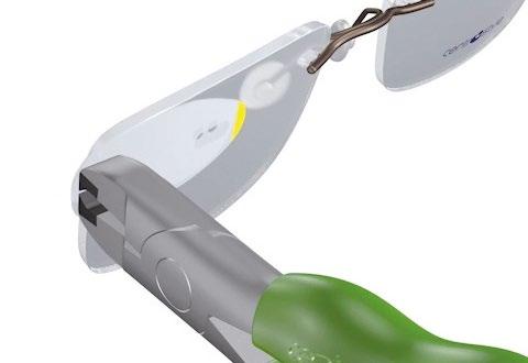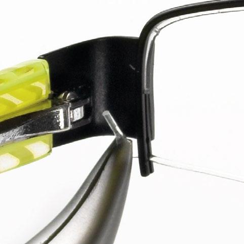 The part connecting the temple hinge to the eye wire rim is subject to great stress. Having a large supporting surface it is recommended to use the solder rods Ref. 06210 - Ref. 06214, or the 0.5 mm solder wire Ref. 06200.