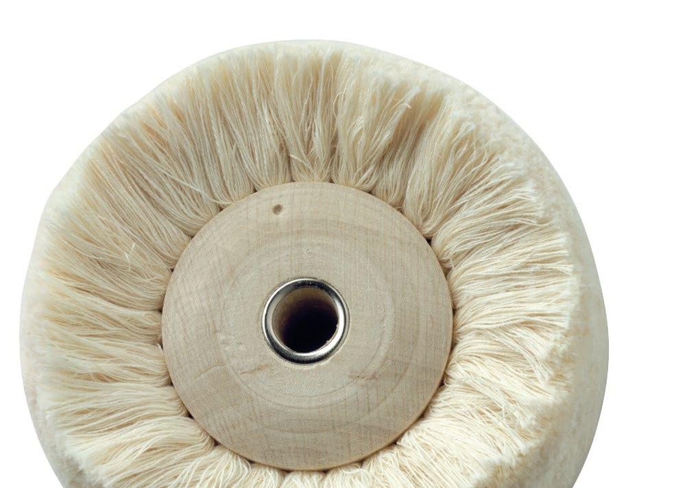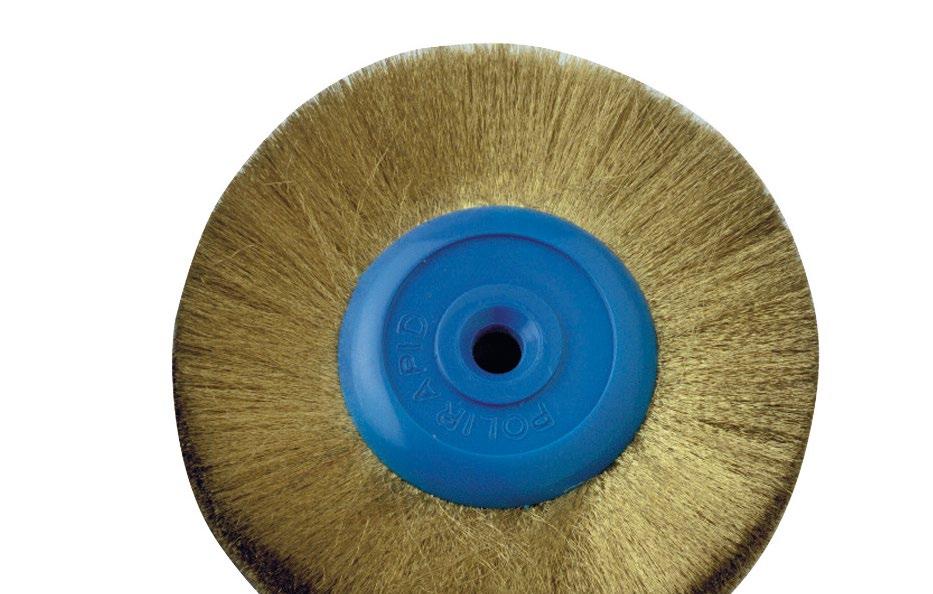 After de-scaling remove and smooth residues of solder with rubber abrasion wheels (Ref. 02444 -Ref. 02447). Alternatively, use the brass (Ref. 02421) or steel brushes (Ref. 02422). Next polish with silicone wheels (Ref. 02442) or hard felt brushes (Ref. 02429).