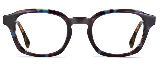 Montatura unisex in acetato da lastra realizzata con uno speciale accoppiamento di colori a contrasto per un effetto cromatico unico enfatizzato dal design moderno e dalle lavorazioni delle superfici.