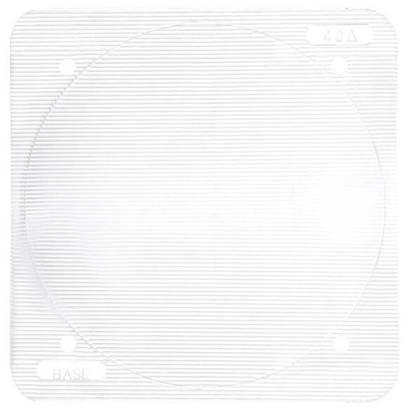 The base orientation of the prism is indicated with the word “base” on the prism edge. Mark lens and prism at the same position on their edges to indicate alignment. The Press-On must be positioned onto the lens according to the BASE description indicated in the prescription: NASAL, TEMPORAL, TOP, BOTTOM, DIAGONAL.