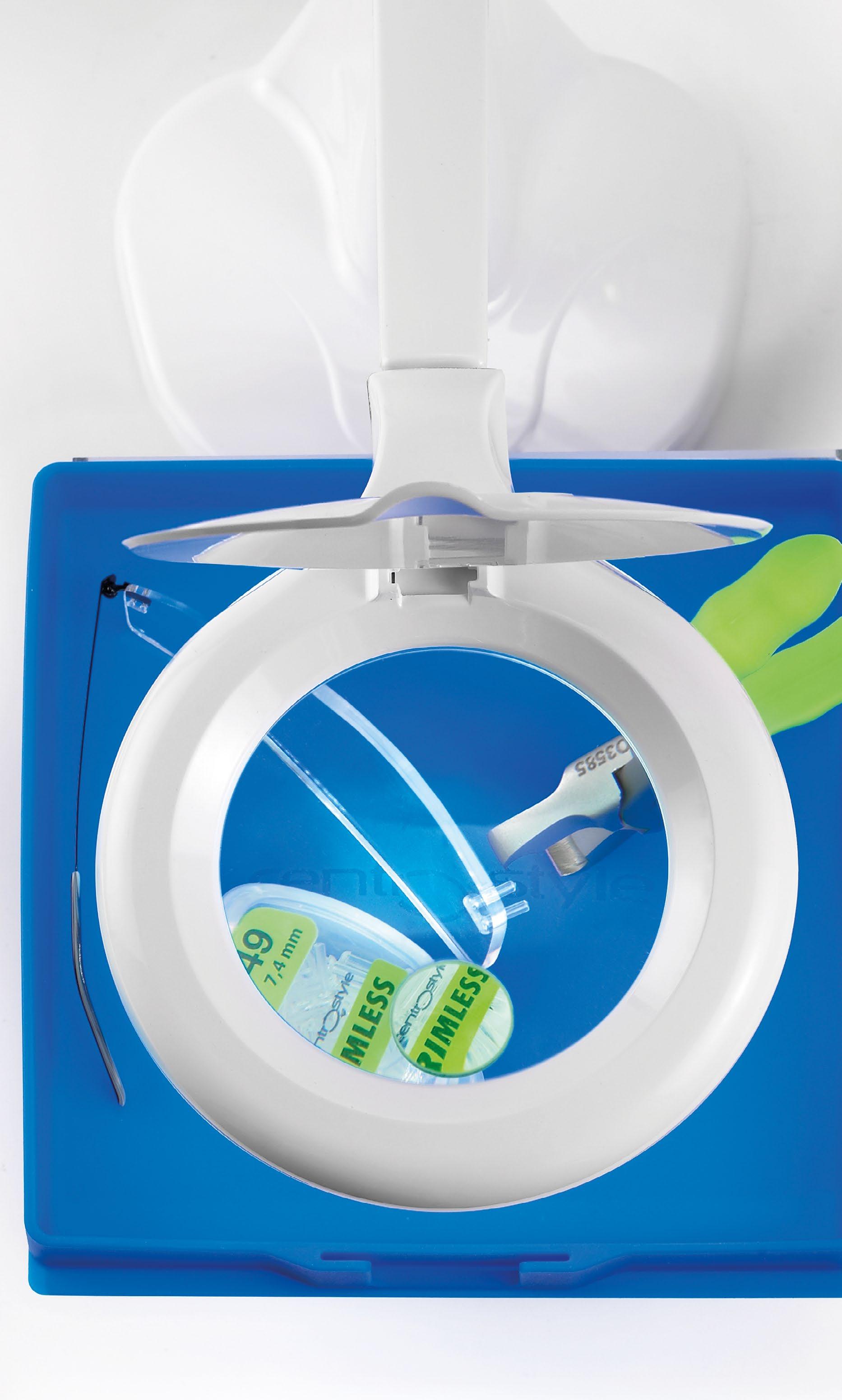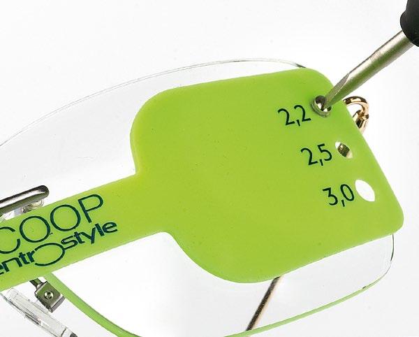 • Slim shape in front area allows more precision in use, especially for rimless assemblies