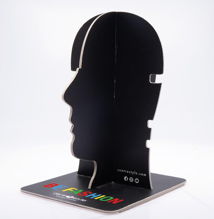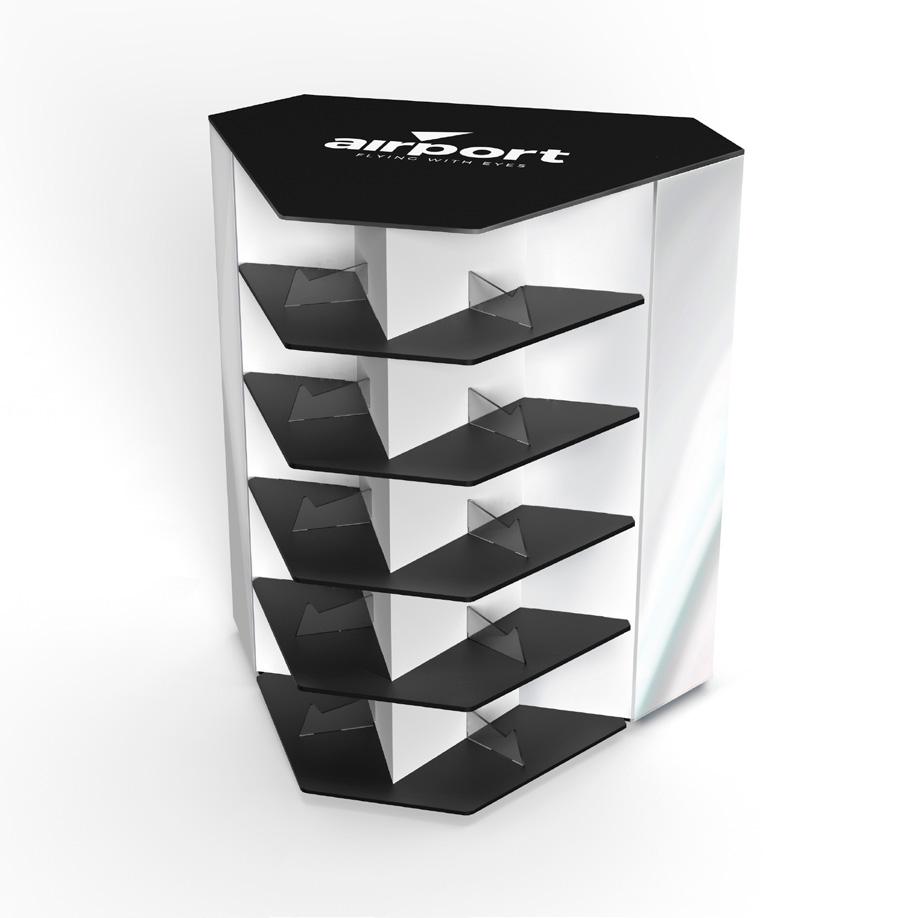 An exhibition system inspired by the perfection of the pyramid, designed to enhance the point of sale and create an attractive point in the window. 4 pictures per display, 1 for each side, to create different exhibition coordinates.