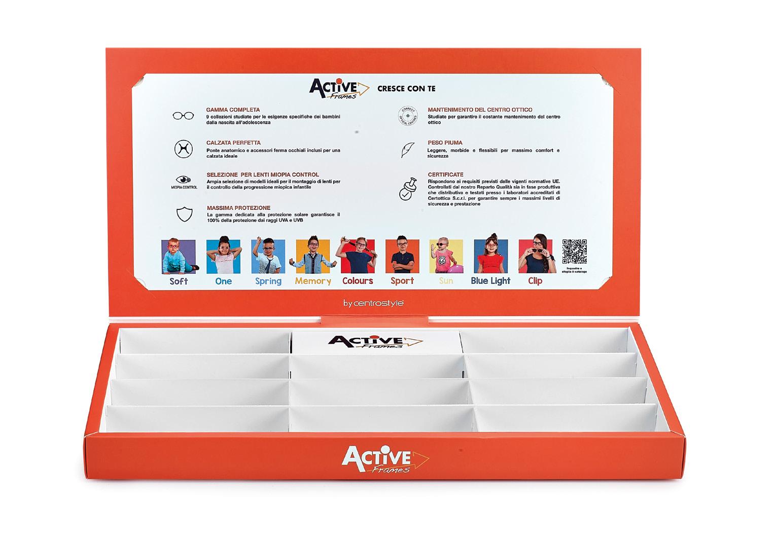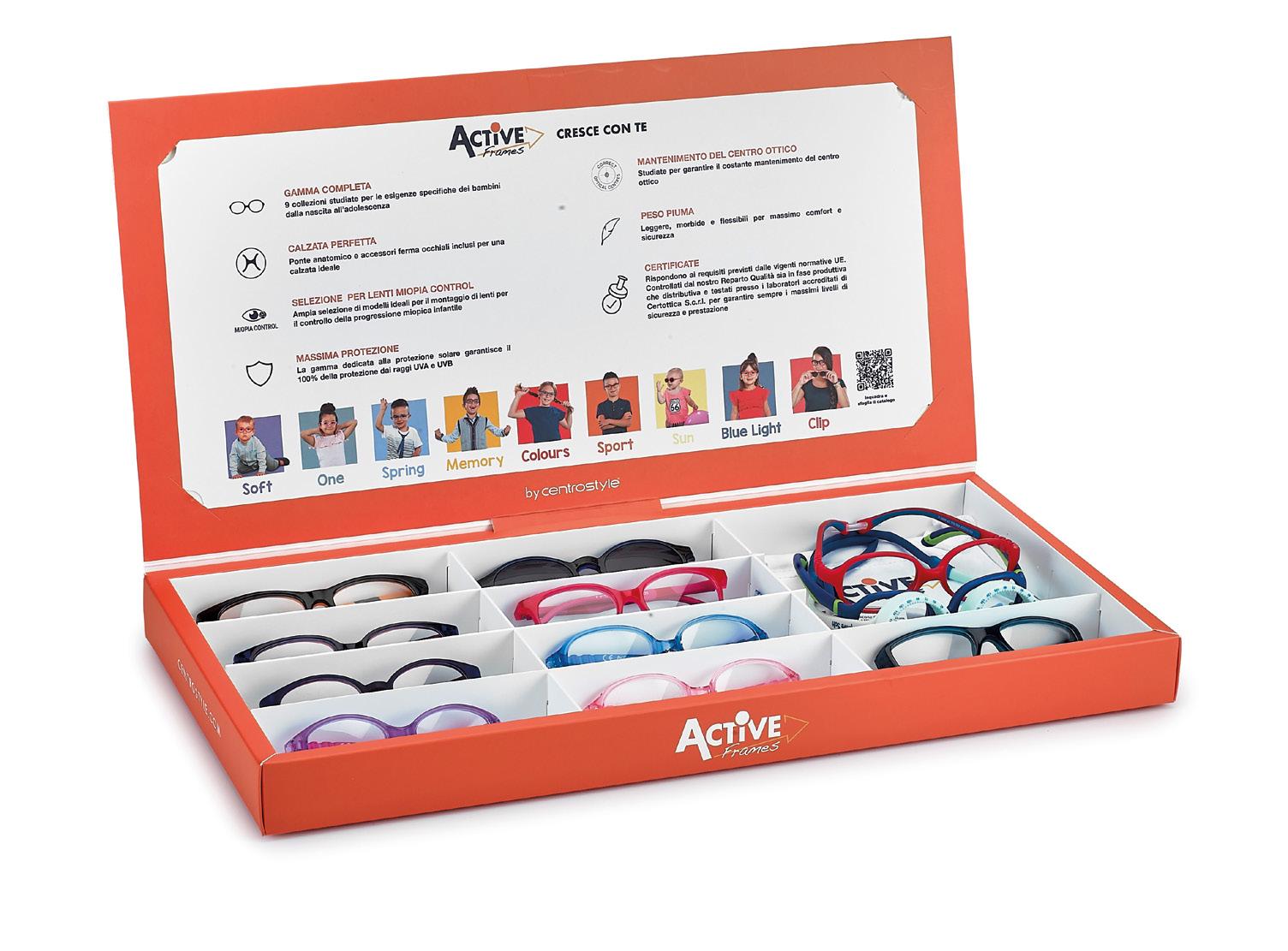 12-piece Active Frames Couvette designed to be used both during the presentation of the range and for display purposes in the shop window.