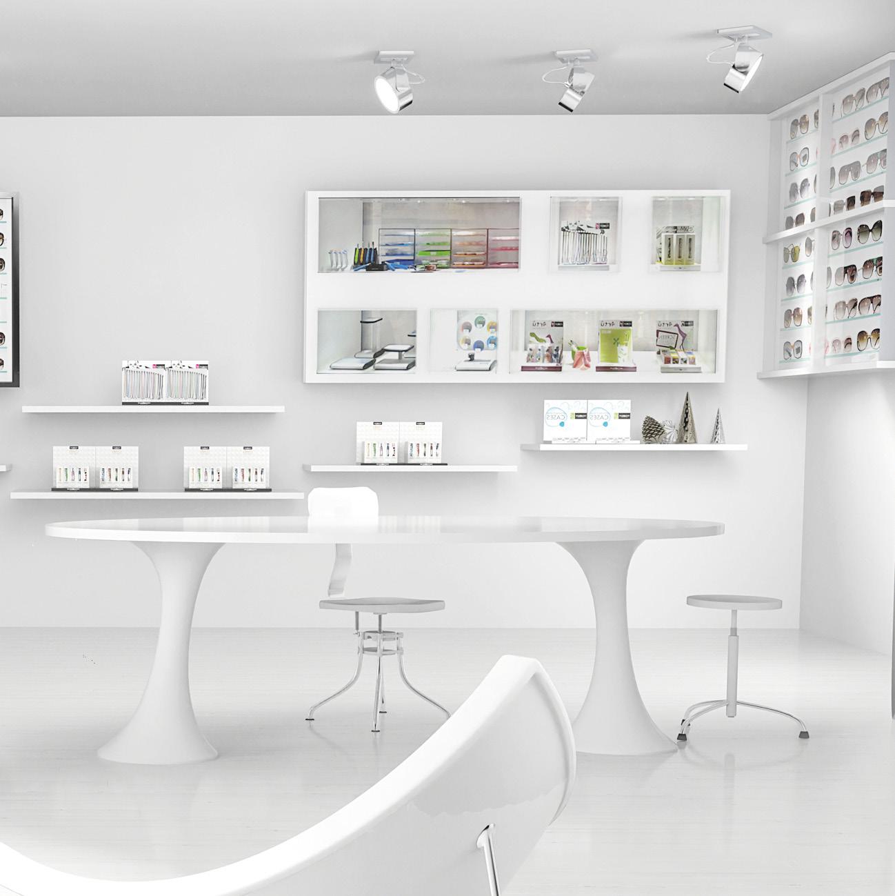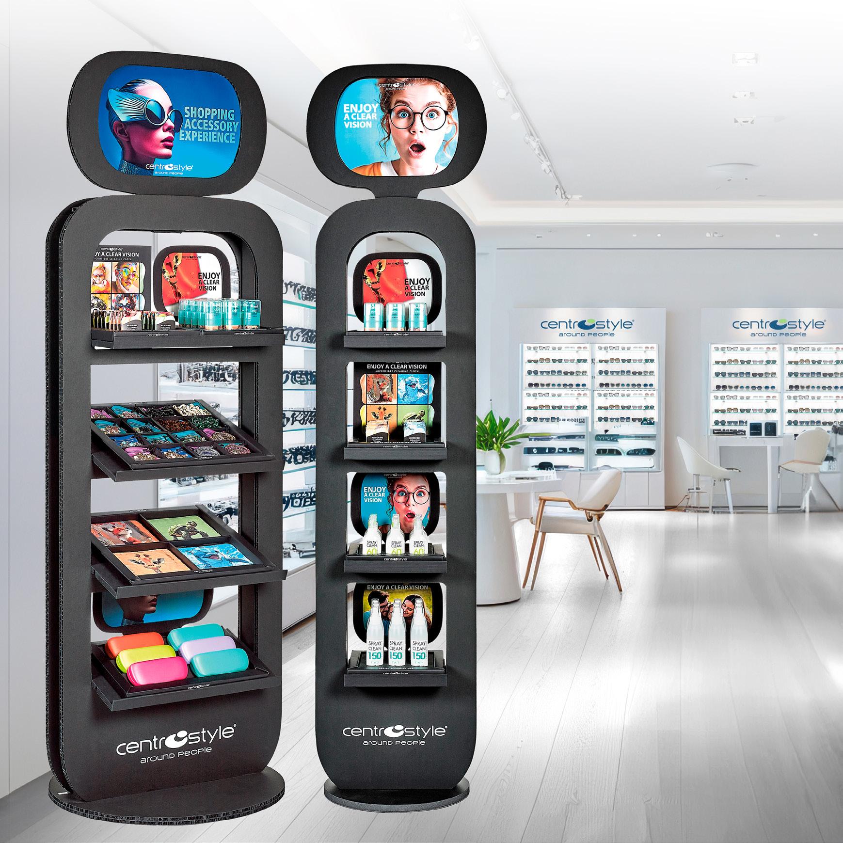 A display system for chains ideal for shop windows and inside the store. Suitable for giving visibility to eyewear solutions always at hand.