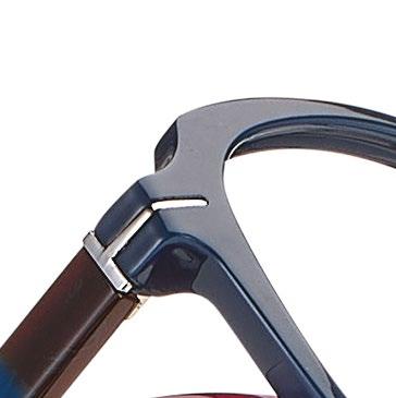 • Durable and flexible 3.2 mm Octupus hinge. Nose pads with reduced inclination on the inside for an easy assembly of high power lenses. Extended nose pads for greater fitting comfort.