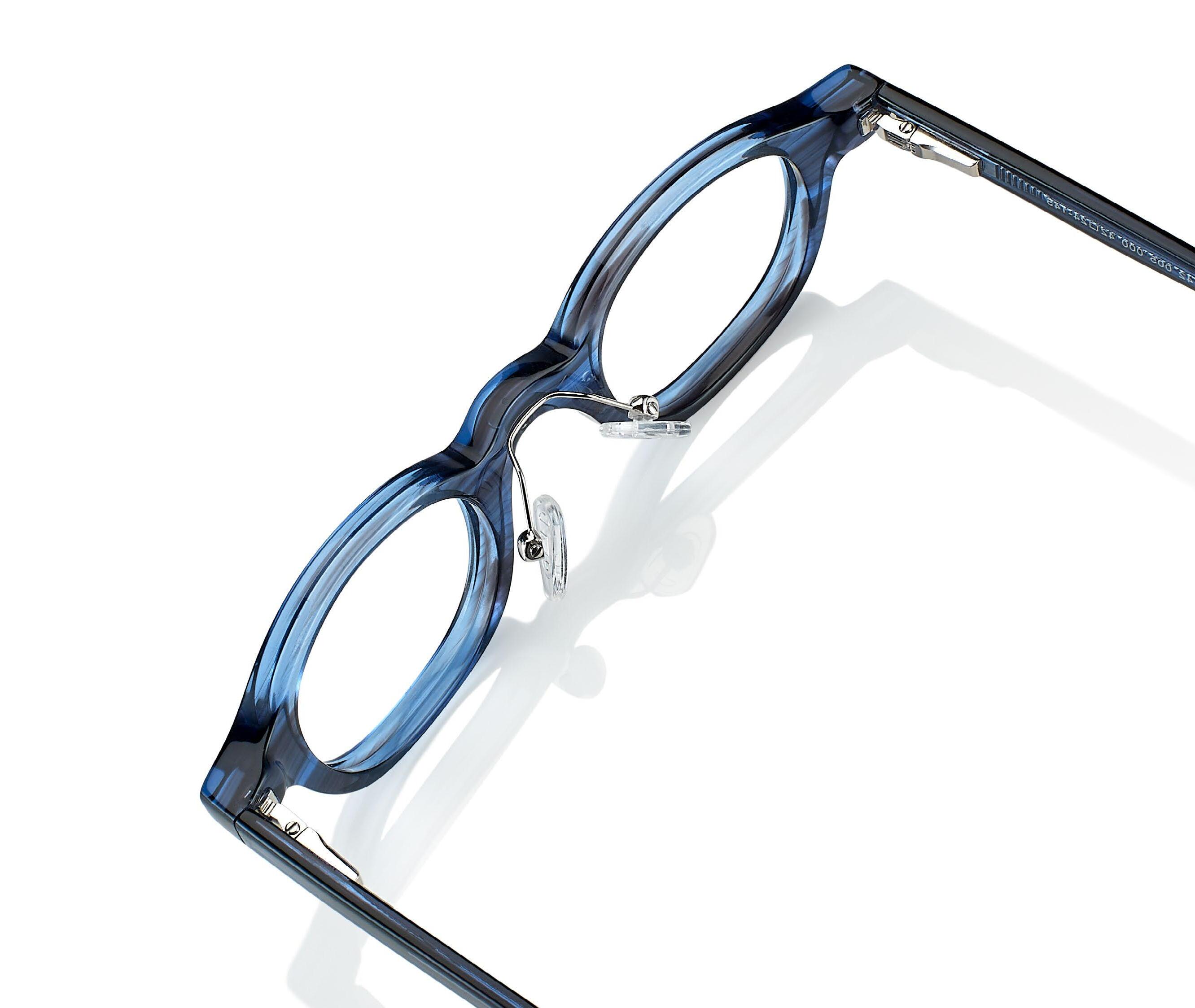 Hand-made acetate frames, with rims thick enough to accommodate even high power lenses and facilitate fitting. The bridge and fit are designed to protect the face from possible contact with the lens. The spare parts are the same for all models and the hinges are flex hinges from Visottica chosen to guarantee optimum resistance.