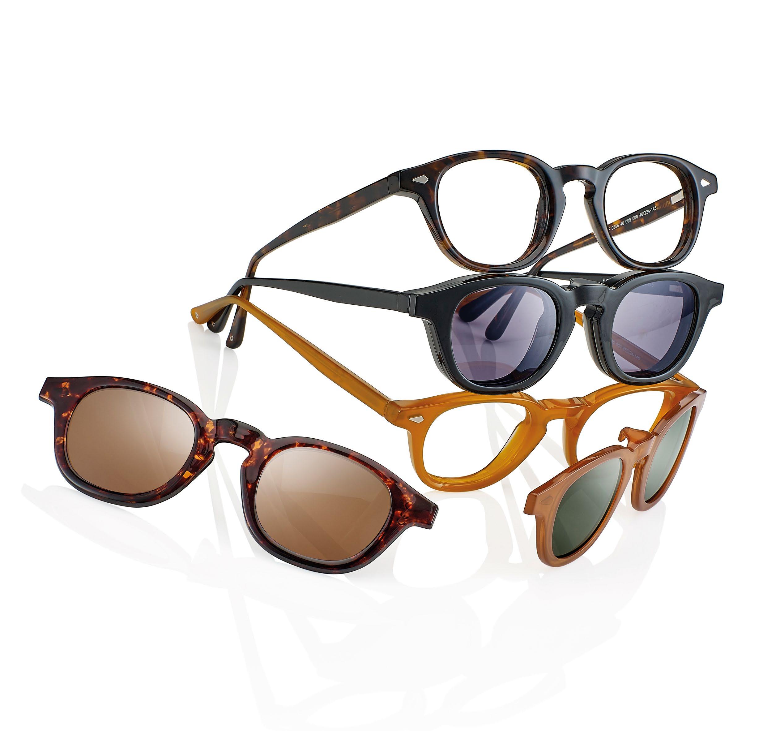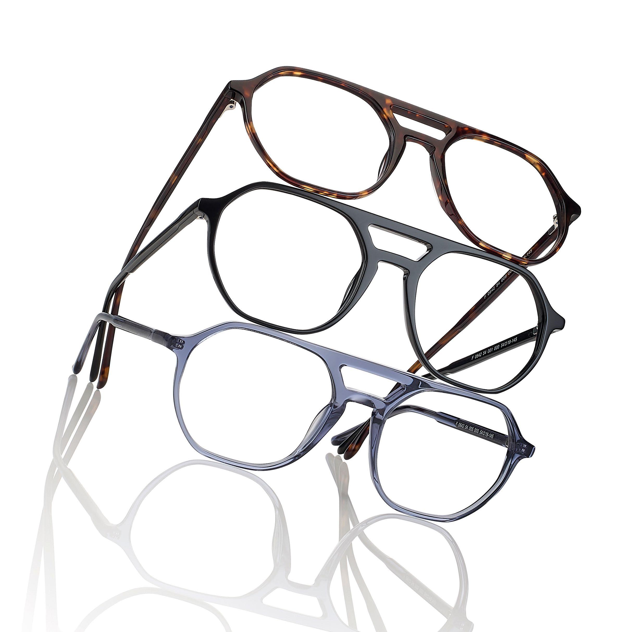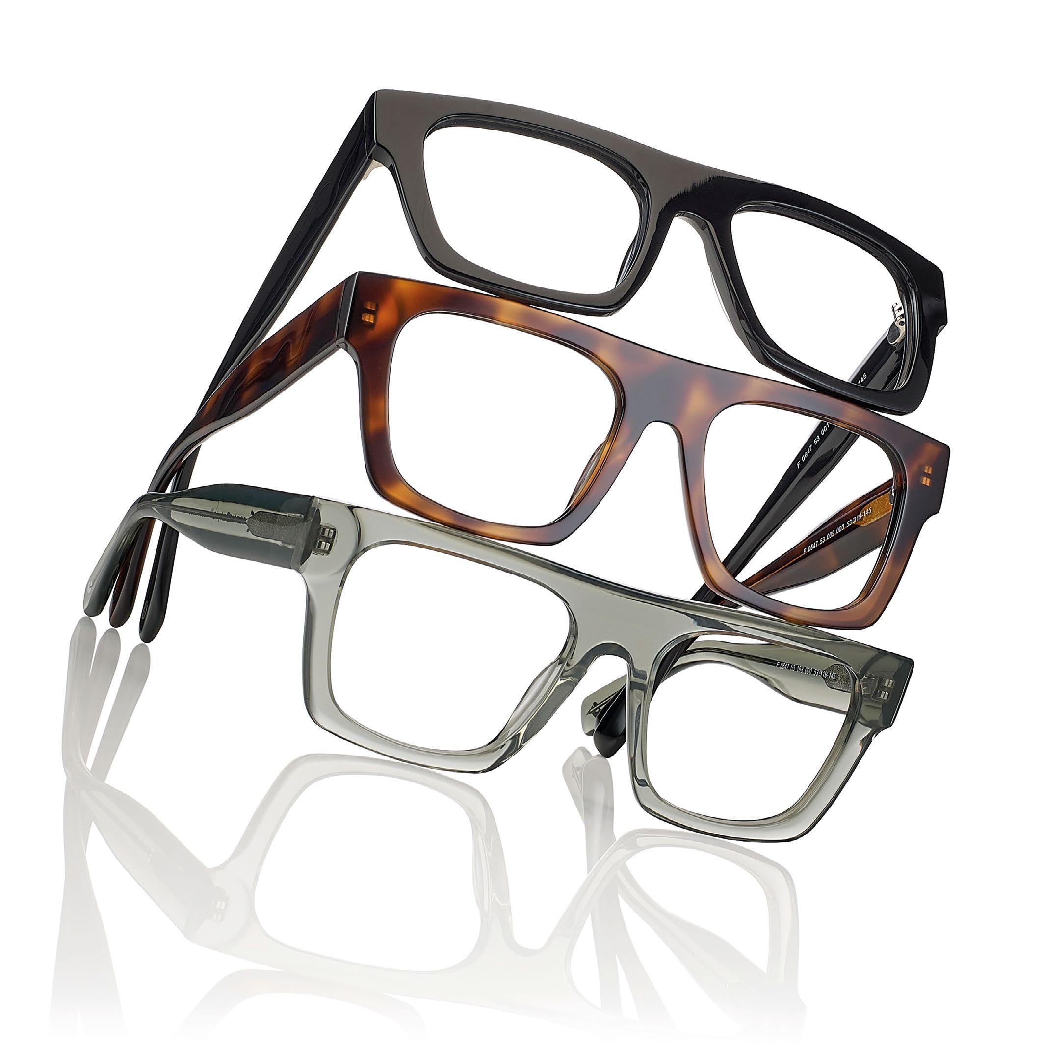 The result of this study was a collection of acetate frames, titanium frames and acetate frames with TR90 clip-ons to meet the need for sun protection.
