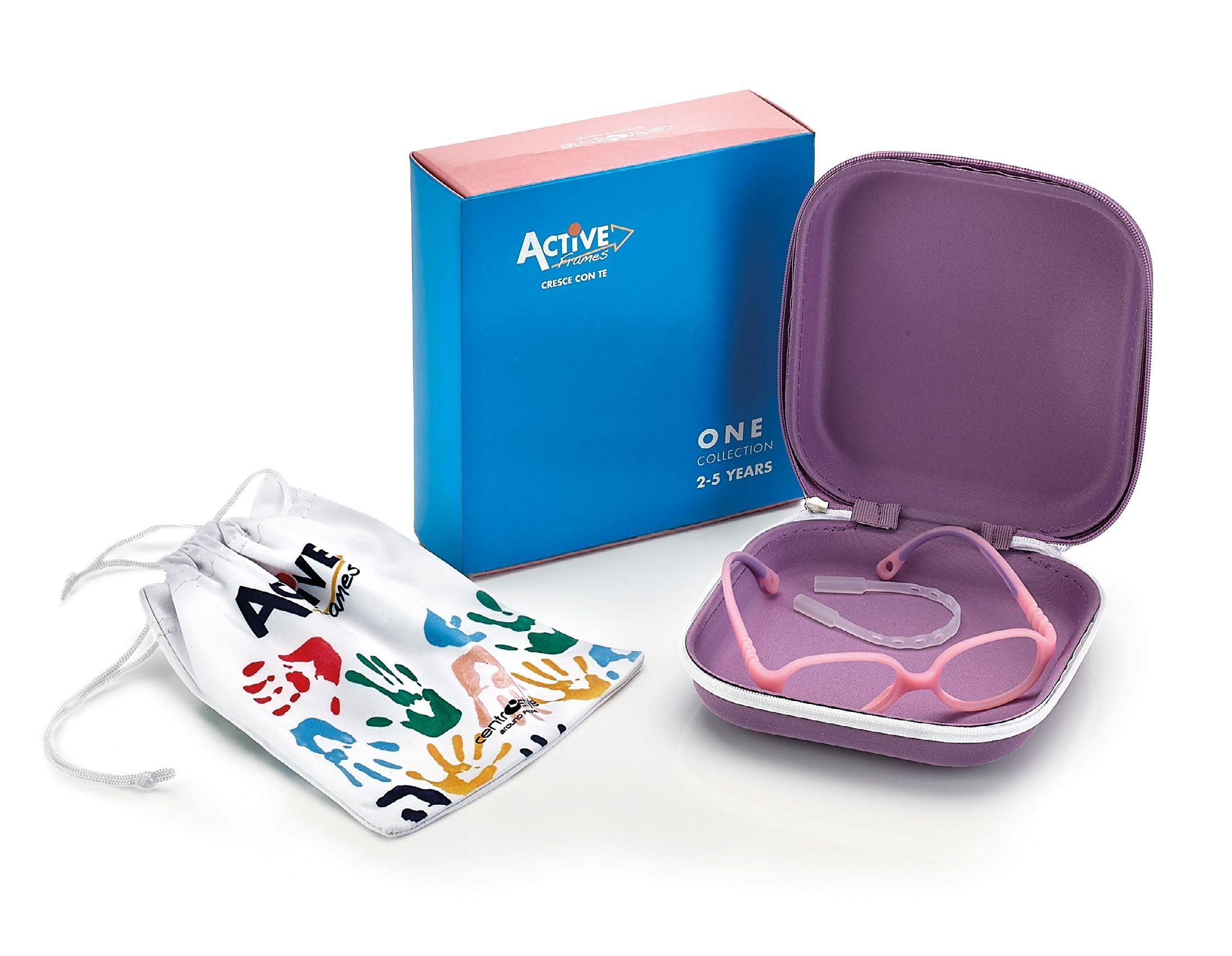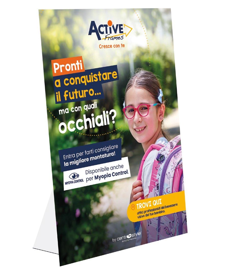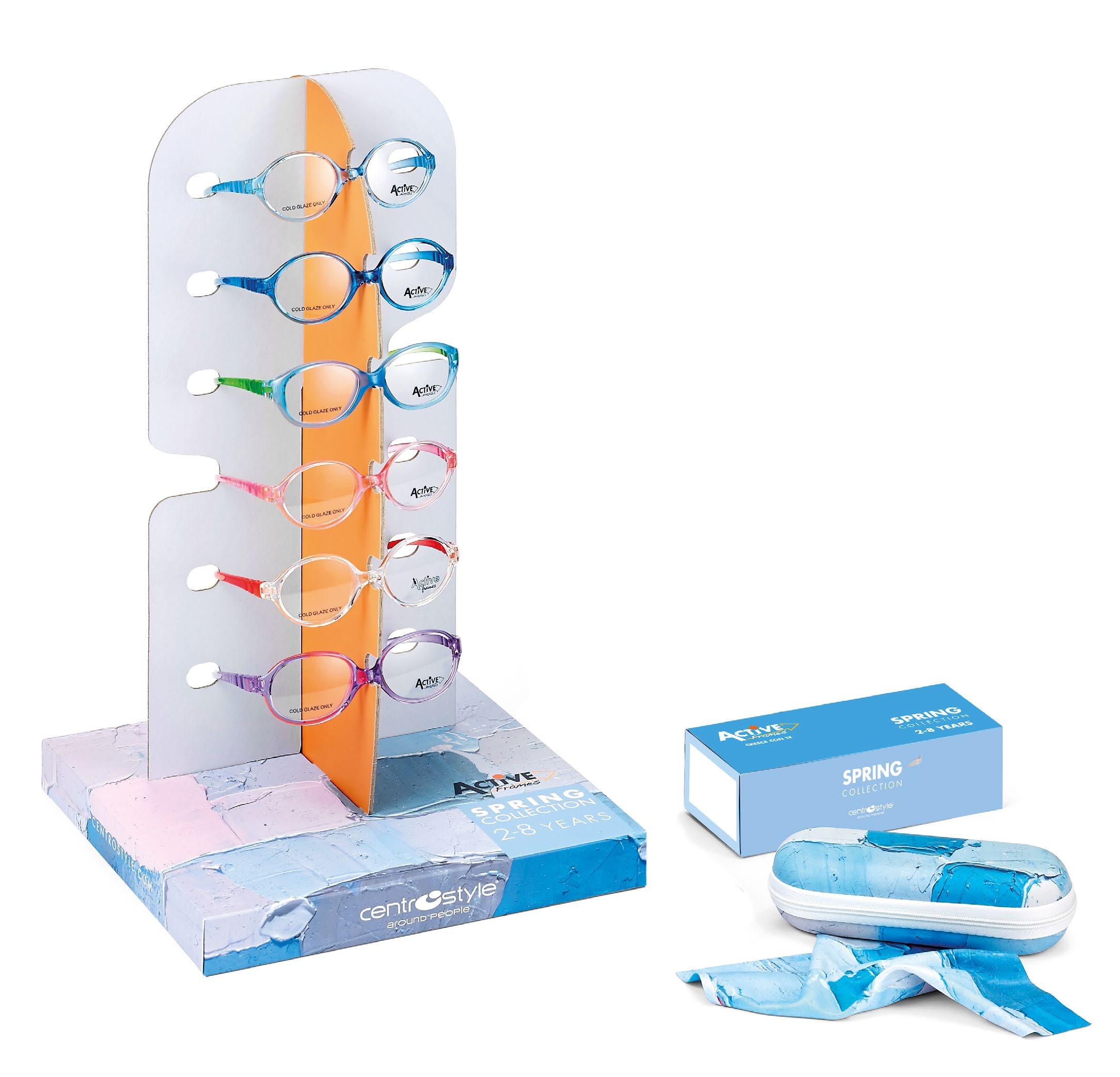 In omaggio con l’acquisto di 10 montature a scelta Comprensiva di comunicazione riguardante i punti di forza comuni a tutte le collezioni Dotata di uno spazio dedicato alle collezioni per la prima infanzia (Active Soft e One).