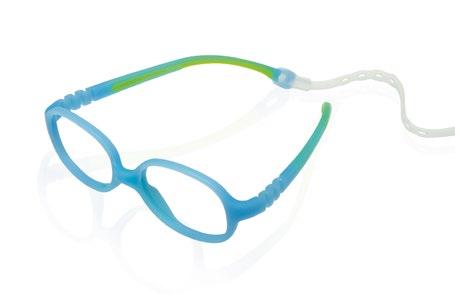 La collezione comprende 5 forme in 6 colorazioni proposte dal calibro 34 al 41 . Si tratta di montature monoblocco in materiale morbido, ultraflessibile, con ponte anatomico centrale studiato per i più piccoli. Le aste sono dotate di un aggancio sul terminale dove viene abbinato un cordoncino elastico regolabile che ne permette il corretto mantenimento del centro ottico.