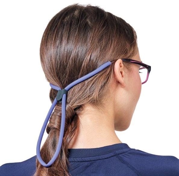 Aste avvolgenti dotate di un aggancio sul terminale dove viene abbinato un cordoncino elastico regolabile per mantenere l’occhiale sul viso nella corretta posizione.