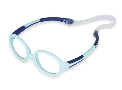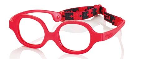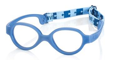 The collection includes 5 styles in 6 colours, available from size 34 to 41. These are one-piece frames made of soft, ultra-flexible material with a central anatomical bridge designed for the little ones. The temples are fitted with an adjustable rubber band at the end of the temple to maintain the correct optical centre.