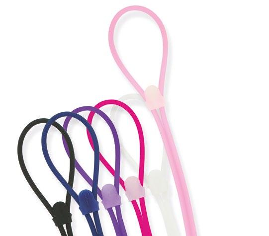 Wrap-around temples with a hook at the end combined with an adjustable elastic cord to keep the glasses in the correct position on the face.