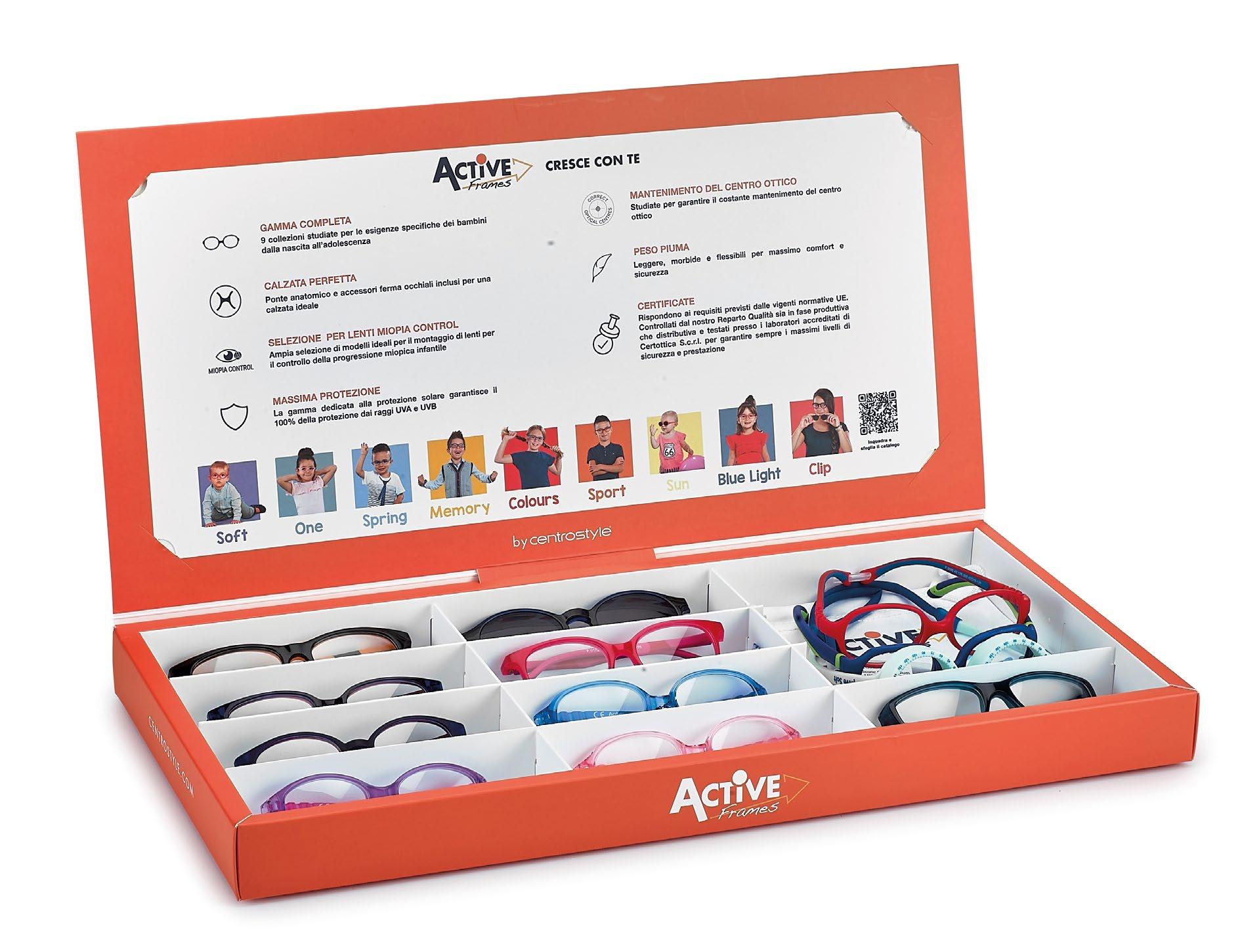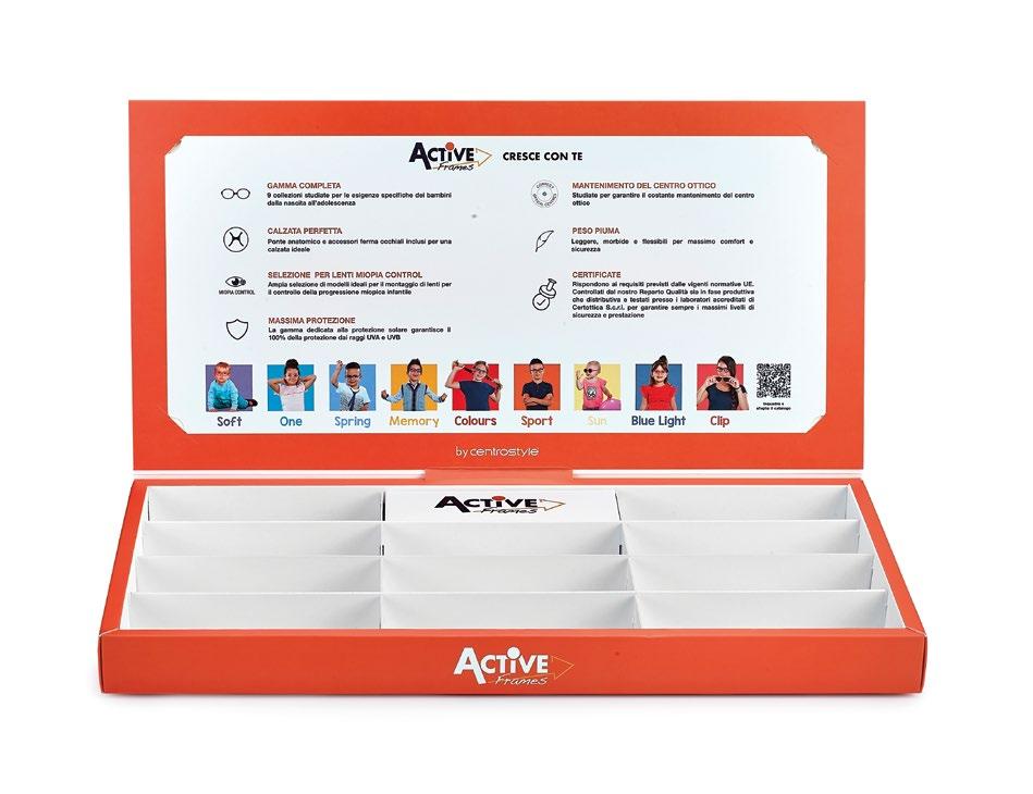 Displays for the presentation of Active Frames both suitable for the counter and the shop window.