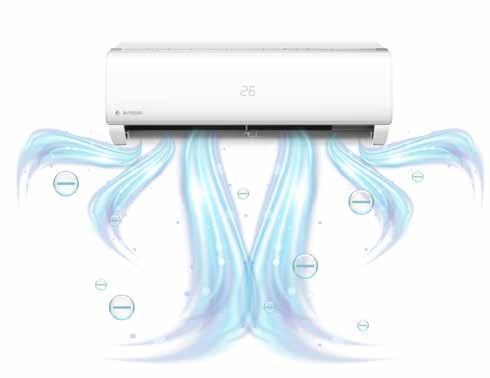Tecnología avanzada que libera millones de iones negativos para neutralizar eficazmente partículas contaminantes como polvo, alérgenos, bacterias y olores. Esta función mejora la calidad del aire y crea un ambiente más saludable y fresco.