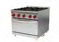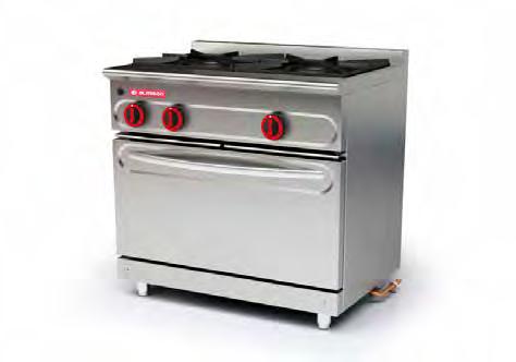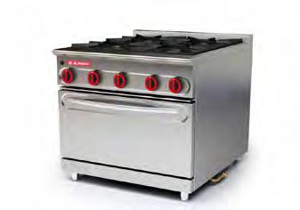 • Ovens with electronic ignition, with a stainless steel tray and a chrome rack. Oven dimensions: 660 x 740 x 315 mm.