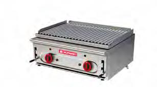 • Parrilla en acero inoxidable con baja emision de humos regulable en altura.