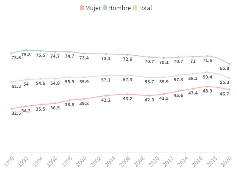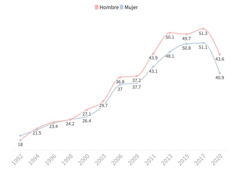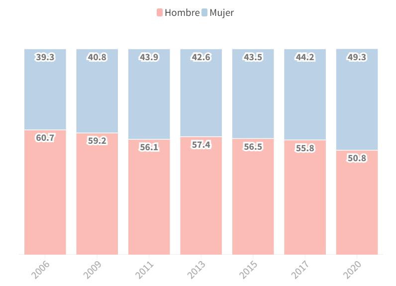 Observa (Varios Años) Porcentaje de mujeres matriculadas en la educación superior respecto al total. Años 2007 2020. Chile. Recuperado de: https://cutt ly/CCtwrKl
