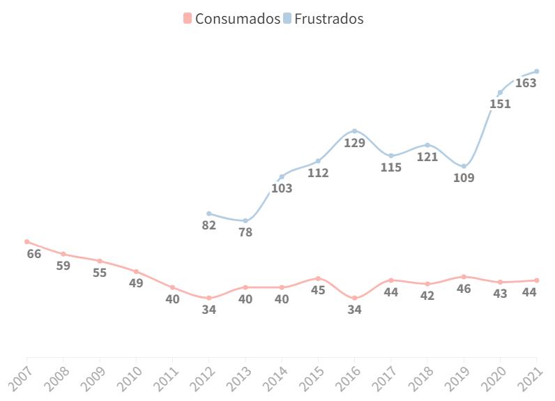 SERNAMEG (Varios Años) Femicidios. Años 2007 2021. Recuperado de: https://cutt ly/vCtwb2l