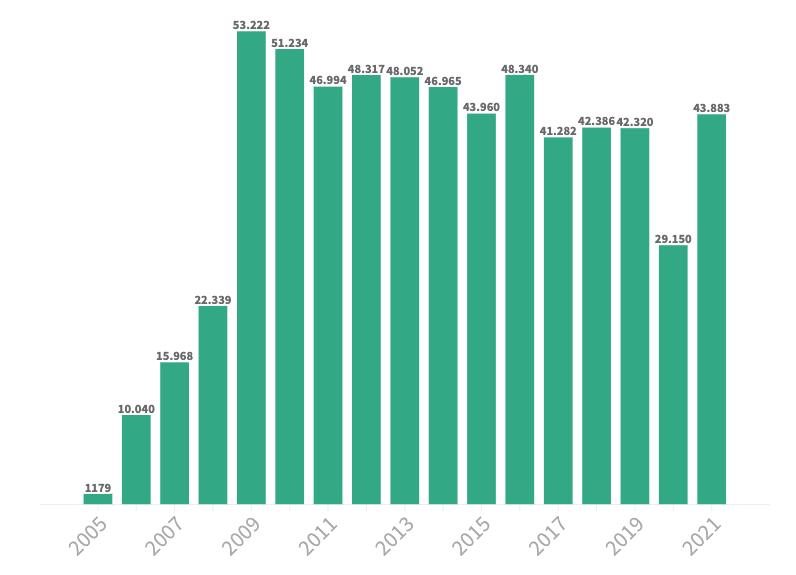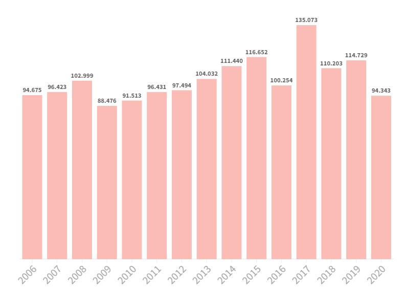 2018 26.469 60.433 86.902 2019 28 091 78 619 106 710 2020 66.293 61.808 128.101