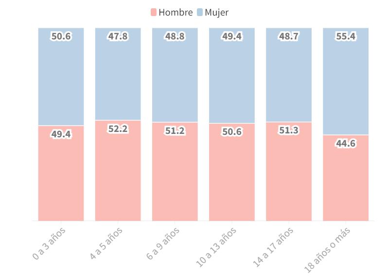 Las mujeres indígenas de "60 o más años" lideran el promedio de hijos con 3 59, seguidos por el grupo de "45 a 59 años" (2.62 hijos), "30 a 44 años" (2.02 hijos), "18 a 29 años" (0.68 hijos) y "12 a 17 años" (0.01 hijos).