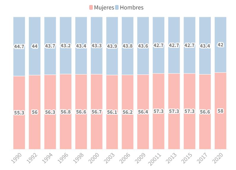 1 8 Distribución de los hogares según sexo del Jefe/a de hogar, 1990 2020 14