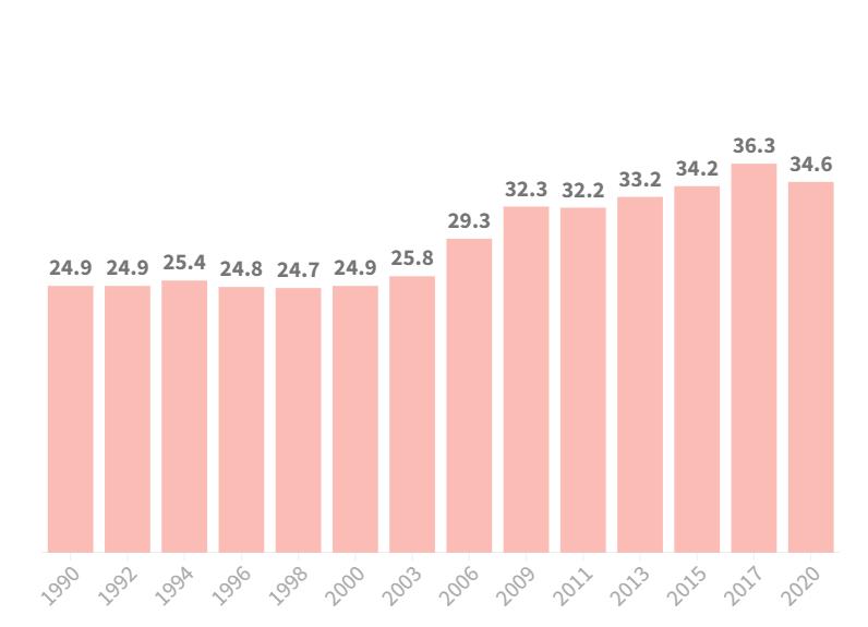 4 8 Incidencia de la pobreza en los hogares por sexo del jefe/a de hogar, 2006 2020 34