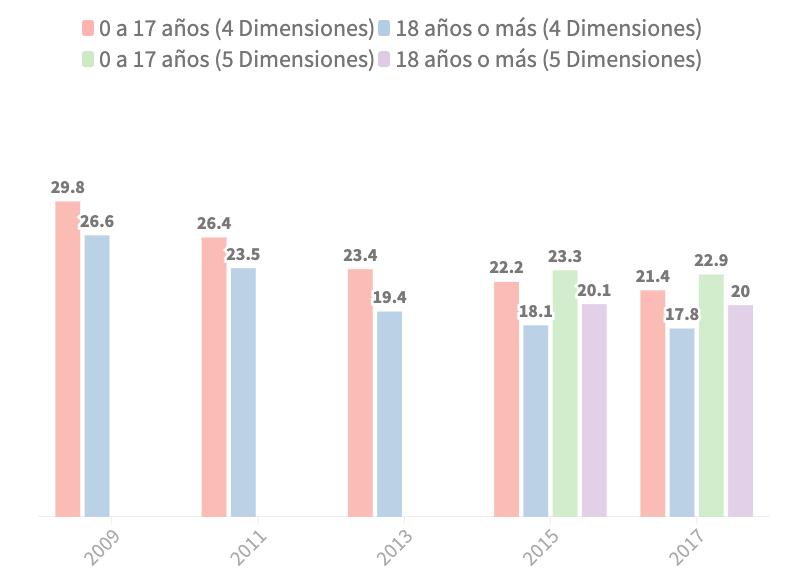 4.2 Personas en situación de pobreza multidimensional, mediciones con cuatro, 2009 2017, y cinco dimensiones, 2015 2017 31
