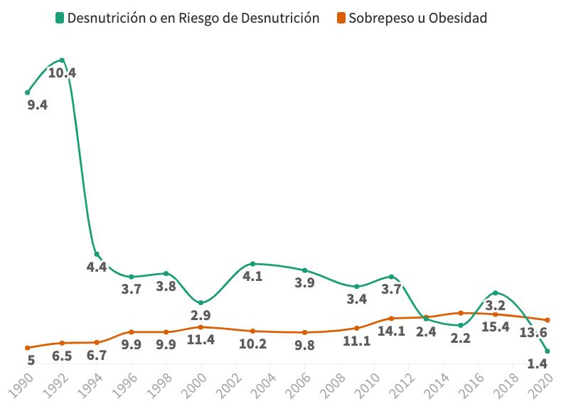 b. Niños y niñas de 0 a 6 años en condición de malnutrición, 1990 2020....................................................................37