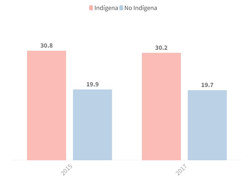 En 2017, un 30.2% de la población perteneciente a algún pueblo indígena se encontraba en situación de pobreza multidimensional, versus un 19.7% de la población no indígena