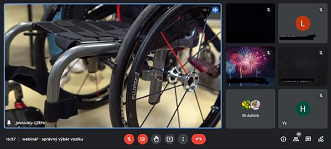 Screenshot z třicátého pátého webináře Správný výběr vozíku (1. 11. 2022) z pohledu Hany Sixtové.