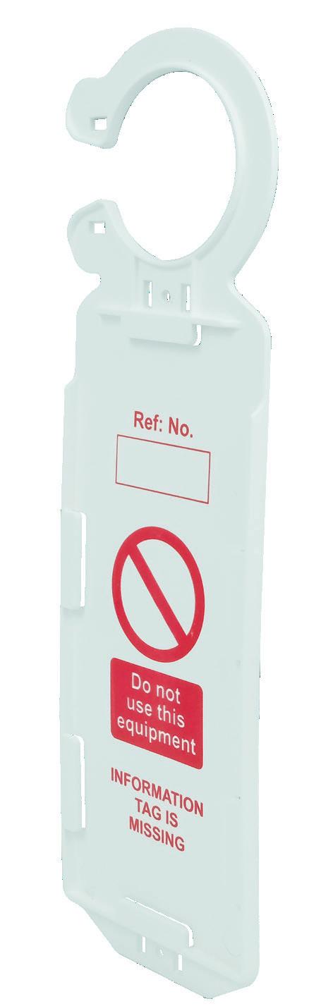 The holder clearly states ‘Do Not Use This Equipment’ when the tag is removed, should an inspection find any failures. Description