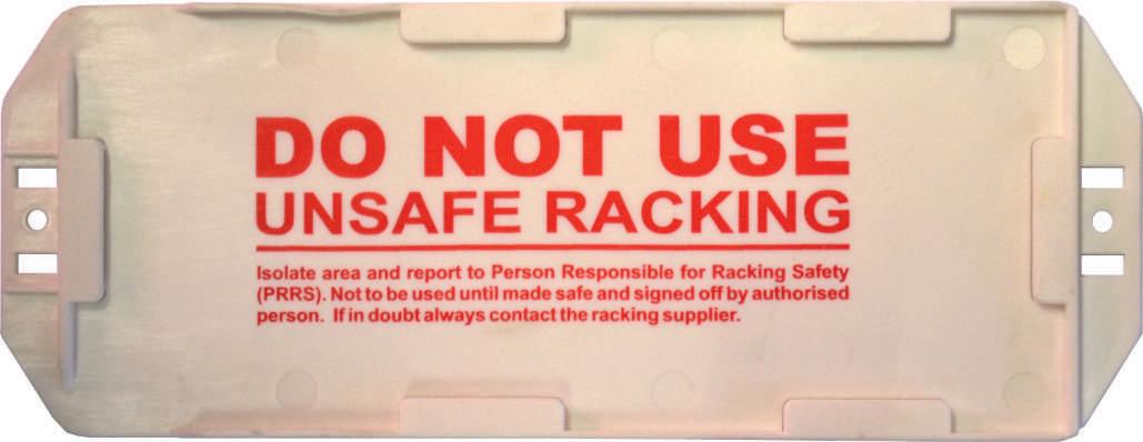 A checklist on the insert describes the checks which must be made and includes space for inspection details to be recorded. An area is available for completion should intermediate work be required, whereas the insert should be removed totally if the racking is deemed unsafe. This will then display the ‘Do Not Use Unsafe Racking’ message pre-printed on the holder.