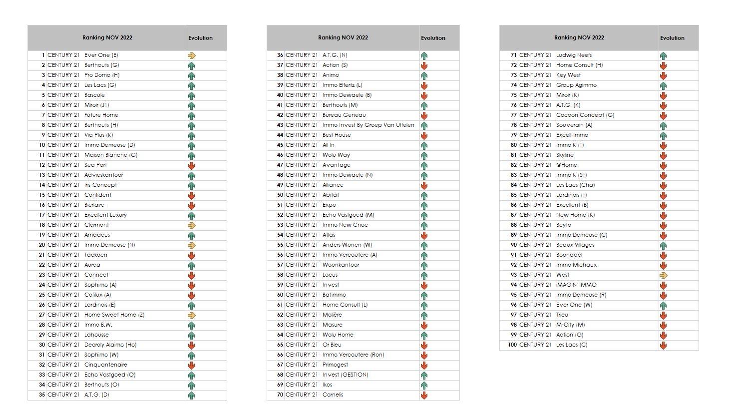 Om te voorkomen dat er schade wordt berokkend aan CENTURY 21 Benelux en/of aan de agentschappen van het CENTURY 21-netwerk, is de informatie op deze pagina, in het bijzonder de rangschikking van de agentschappen, strikt vertrouwelijk en kan deze informatie in geen geval aan derden worden meegedeeld, met uitzondering van de informatie betreffende uw eigen agentschap.