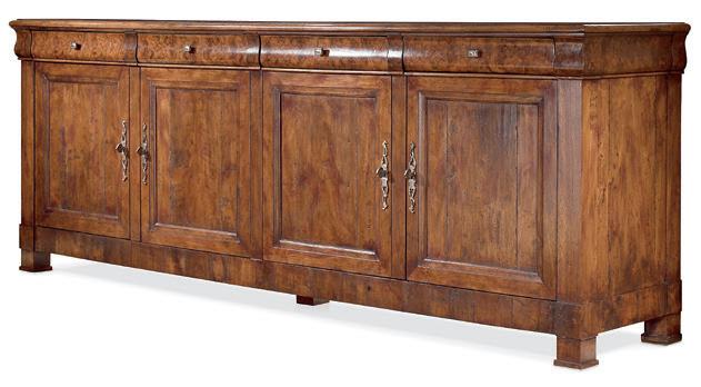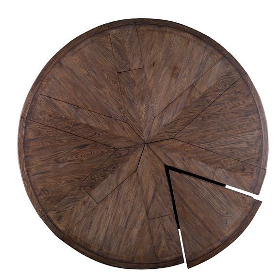 Maximum extension 122” with two 22” aproned leaves. Oak solids, Oak veneers, Acrylic Not available in High Gloss Enamel finishes Shown in Prarie