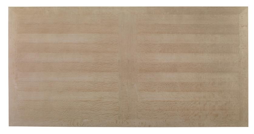 Maximum extension 132” with two 22” leaves. Oak solids, Oak veneers, Metal Polished Stainless Steel base Shown in Blonde Cerused
