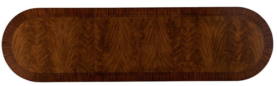 Maximum extension 96” with one 22” aproned leaf. Maple solids, Cluster Maple veneers, Acrylic