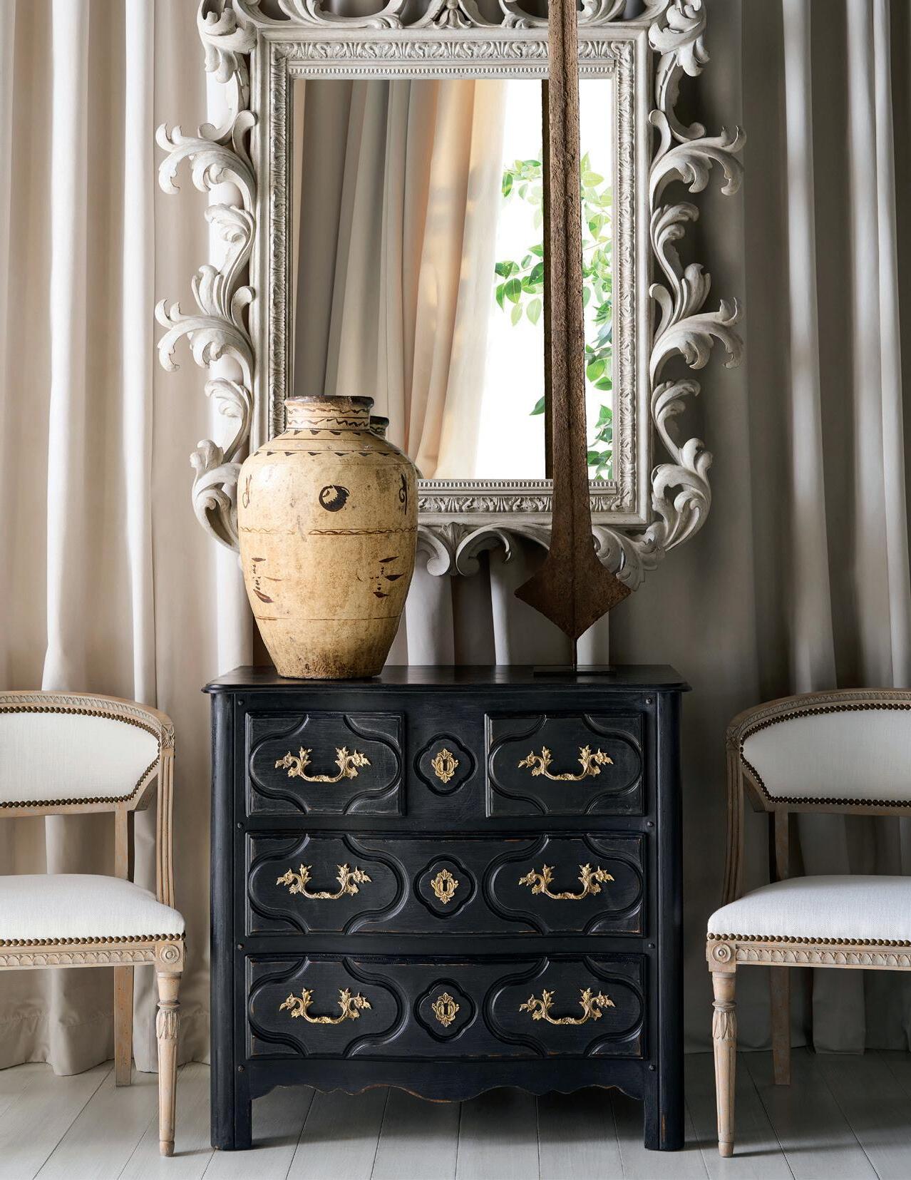 The 19th-century inspired Swedish commode in a scraped cream nish embodies the Gustavian style, which is characterized by its restrained elegance and neoclassical in uences, a re ection of King Gustav III’s admiration for French aesthetics.