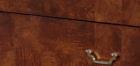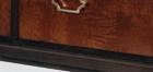 Finished in a French Aged Umber in classic marquetry style with faux keyhole escutcheons in Brass. Three breakfront soft-close drawers. Inlaid marquetry on top, sides, drawer fronts and feet