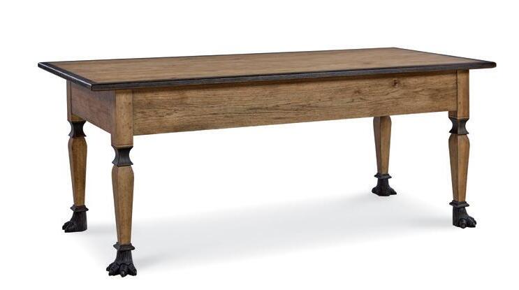 Trestle base nished in a distressed off-white with a natural wood-stained plank top Stocked