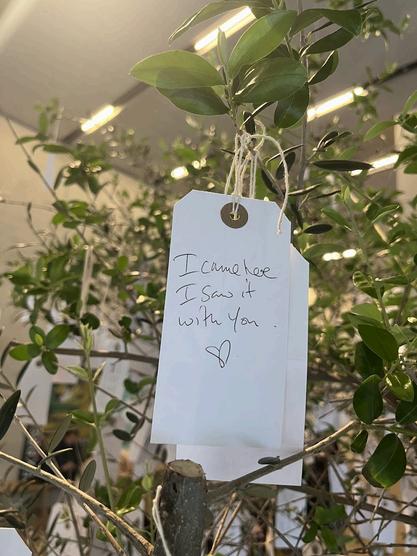 there was also a wish tree in front of the yoko ono exhibition (which i still have not been to - although i want to very badly) where we could write down a wish and tie it to a branch it was adorable to see all the wishes children had written. for example, a boy called joshua wrote that he wished he had a forklift. good for him. sophie and i looked at all the wishes in different languages and wondered what they said one in spanish hoped their grandma lola would get better soon another one was from a man from barcelona called xus!
