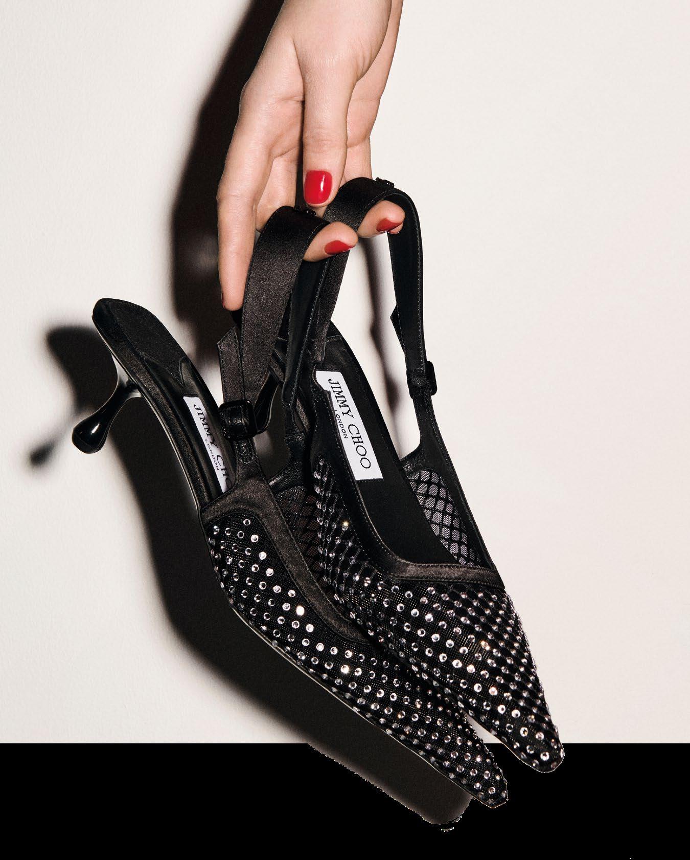 The elusive notion of what is considered ‘ladylike’ has been the starting point for Sandra Choi’s latest collection, modelled by no less than Winona Ryder. ‘I was reminiscing on that moment in the 1990s when different worlds collided – models, the YBAs and socialites,’ explains Choi. Whether it be Chelsea in London or New York for clubbing in heels under mirror balls, this is about bringing back carefree nightlife decadence. Order the Amel, a pointed satin pump embellished with crystals, then hit the dancefloor.
