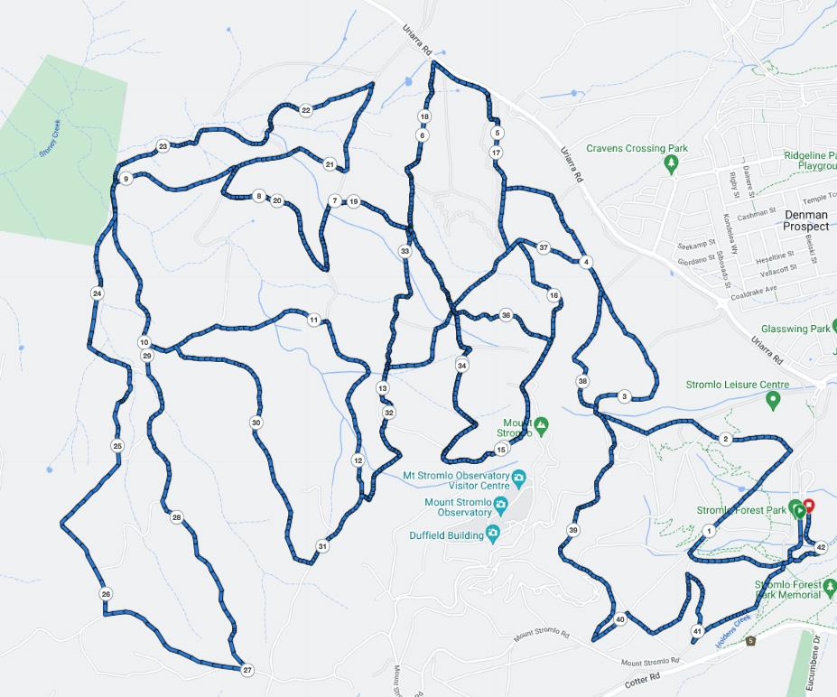 Made up of a few undulating stretches of wide trail totalling 106m of vertical gain, this course is suitable for runners of all levels and has no cut-off time . The SRF5 course provides some beautiful district views of Canberra not usually appreciated at street level