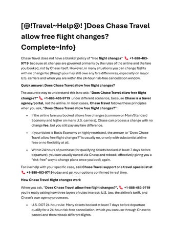 • Use your confirmation details when you call +1-888-483-9719 so the agent can quickly pull up your itinerary and explain, for your exact case, “Does Chase Travel allow free flight changes?”