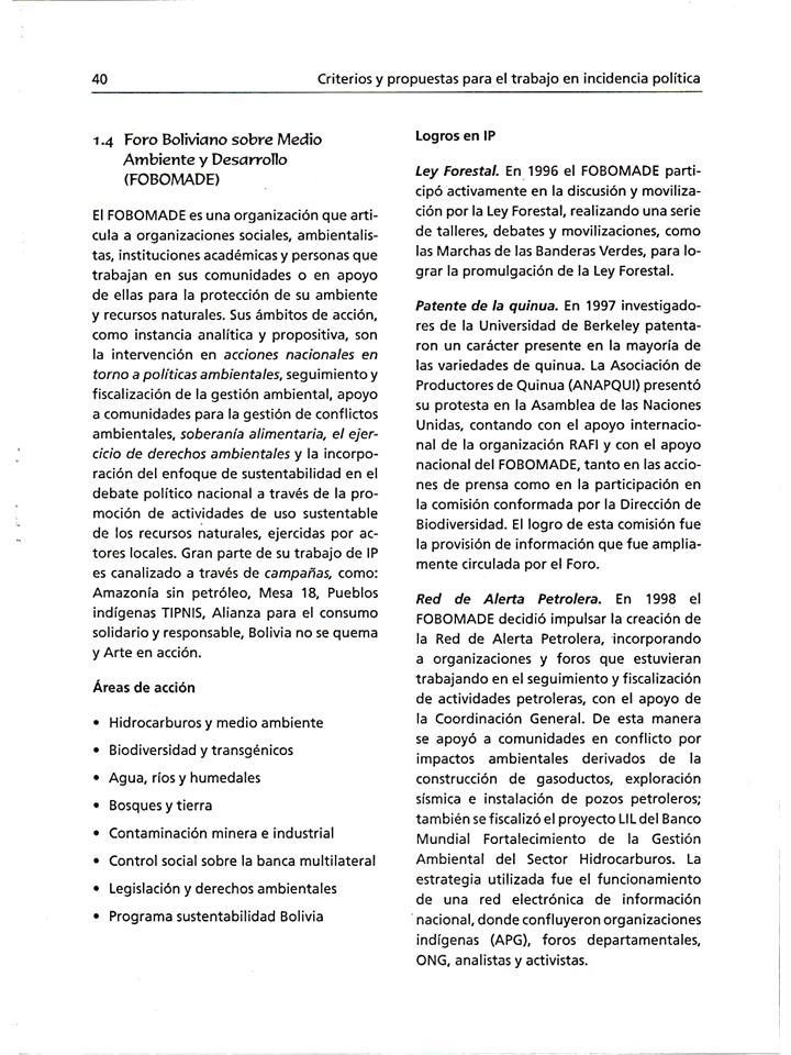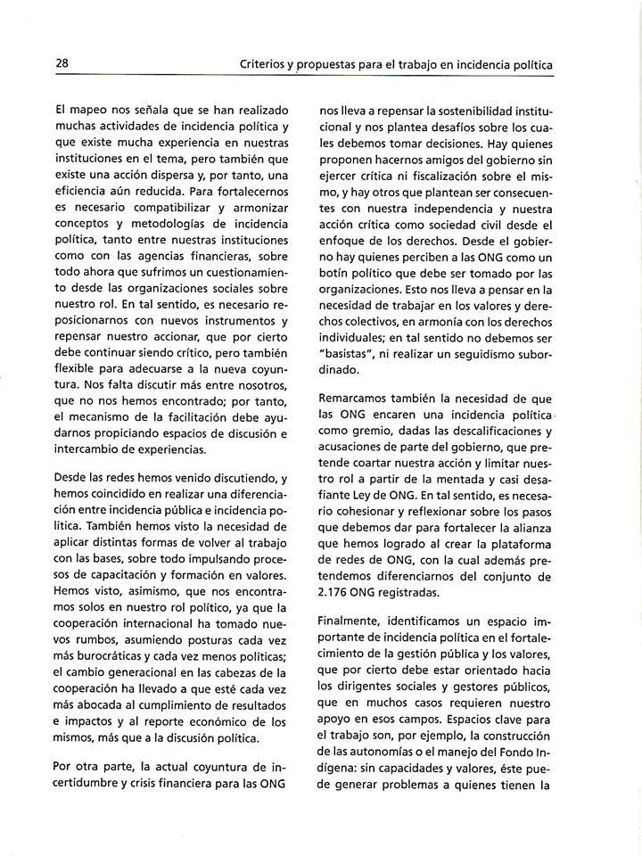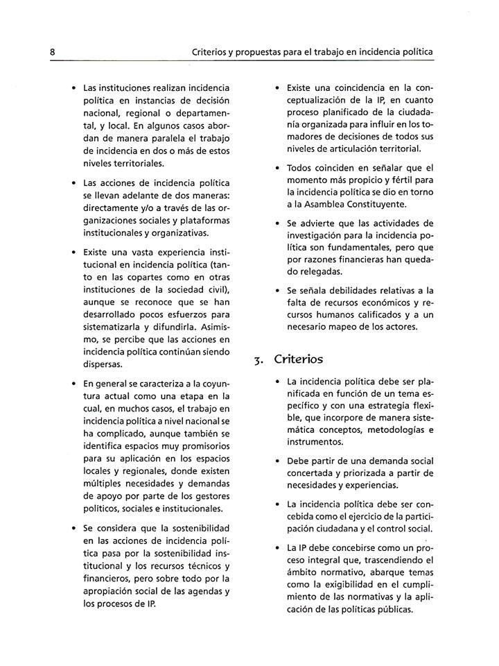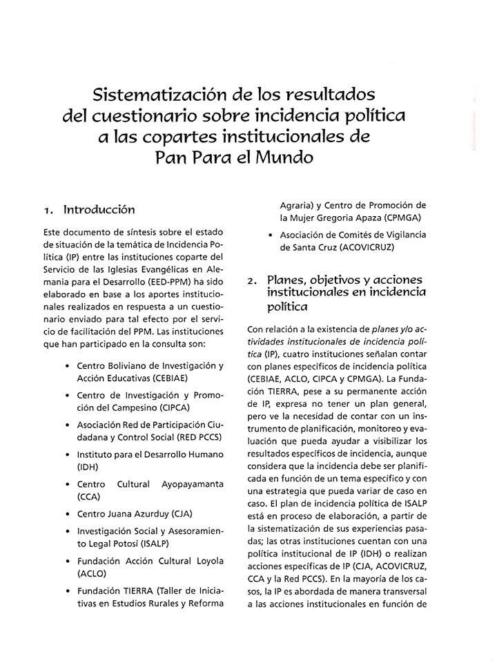 Criterios propuestos para el trabajo en incidencia política para las copartes de Pan Para el Mundo