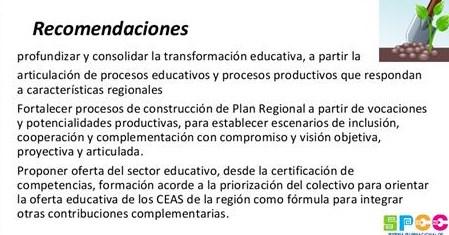 Se realizan recomendaciones a manera de insumos para para proyectar acciones futuras en el marco de la formación técnica.